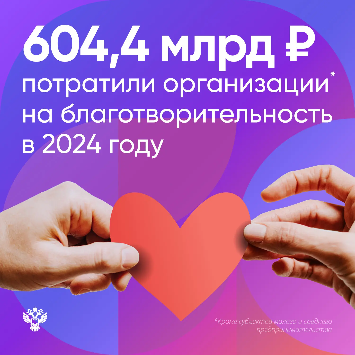 🙏 Благотворительность — это самый действенный способ делать мир добрее. 604,4 миллиарда рублей потратили организации (кроме субъектов малого и среднего предпринимательства) на эти цели в прошлом году!