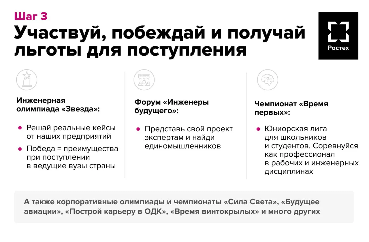 «Работать в Ростехе – это не только решать интересные задачи, но и иметь уверенность в завтрашнем дне. Средняя заработная плата на предприятиях Корпорации превышает 107 тысяч рублей. Мы предлагаем также достойный социальный пакет, куда входят жилищная программа, ДМС, санаторно-курортное обеспечение и многое другое. Всего на наших предприятиях действует 15 социальных программ, а сумма их финансирования превысила 24 млрд рублей в год», – добавили в Ростехе.