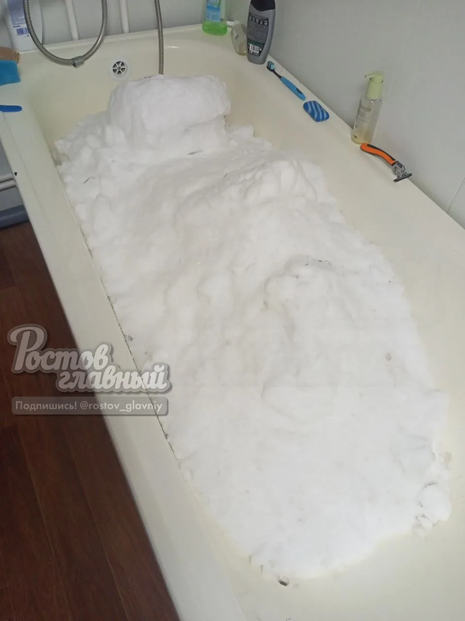 Подвоз воды идет по заявкам по номерам: 8 (961) 283-66-13; 8 (909) 406-17-27 и 8 (960) 455-62-42. Но люди не могут ждать и начали топить снег в кастрюлях и ванных.