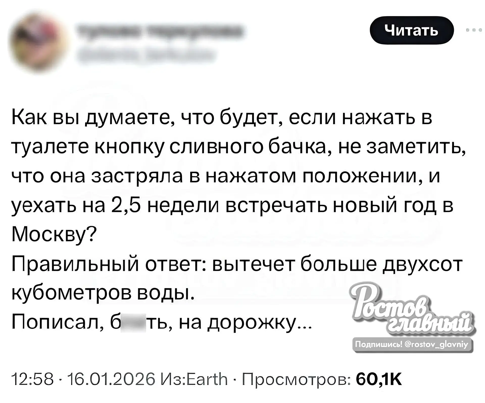 ⛲️ Из-за крупной аварии на насосной станции № 5 жители Гуково, Зверево, Красносулинского и Каменского районов остались без водоснабжения. Подвоз воды толком не организован, поэтому жители собирают снег и топят его в ванной. Воду обещают дать к 11 часам 18 января