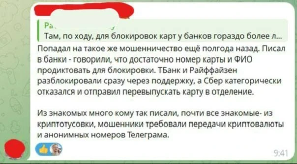 ▪️ После блокировки мошенники пишут жертве в соцсети и начинают запугивать, требуя выйти на связь или выполнить их условия;