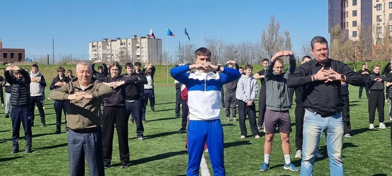 На стадионе царила атмосфера единства и дружелюбия. Участники марафона с энтузиазмом включились в активную программу: зарядка и командные задания стали отличным стартом для нового дня.