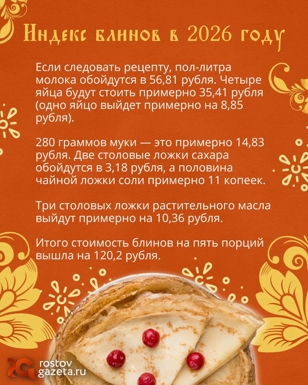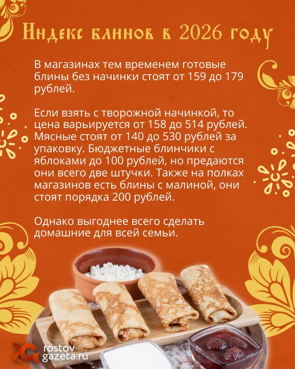 Мы подсчитали, сколько будет стоить приготовить угощение на Масленицу в 2026 году. Учли и стоимость продуктов для самих блинов, и начинку (сметану, сгущенку и варенье). А также проанализировали, что дешевле: купить блины в магазине или напечь самим.