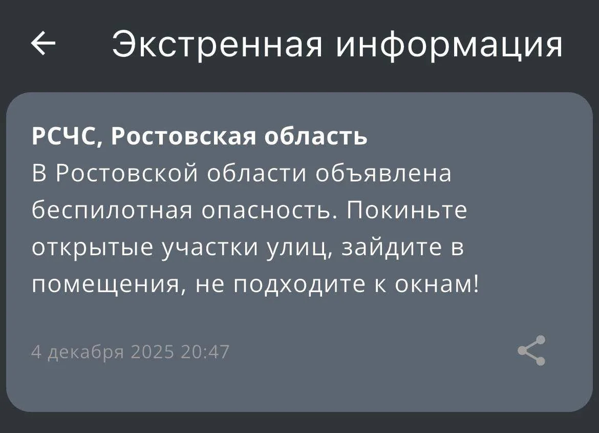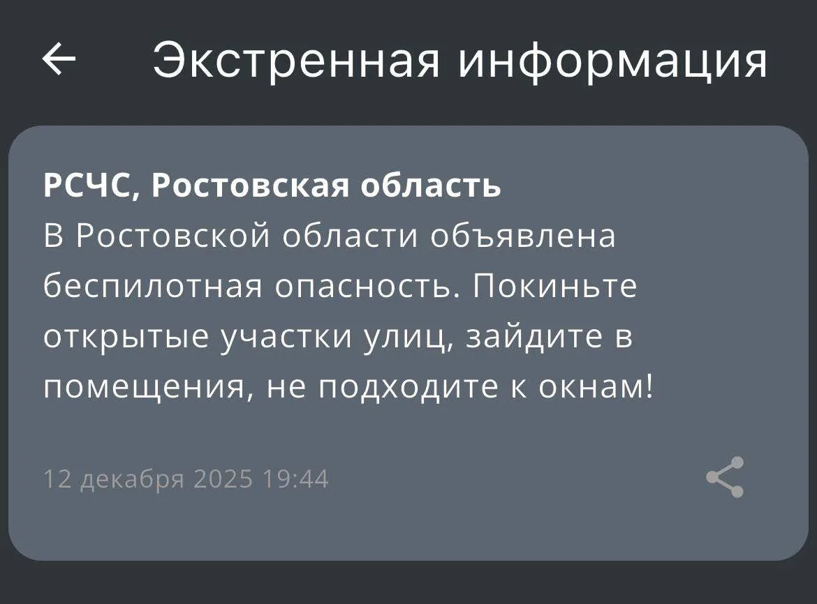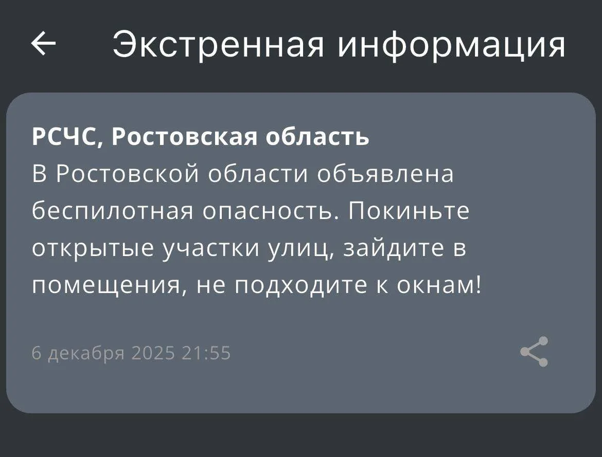 ⚡️ Беспилотная опасность объявлена по всей территории Ростовской области.