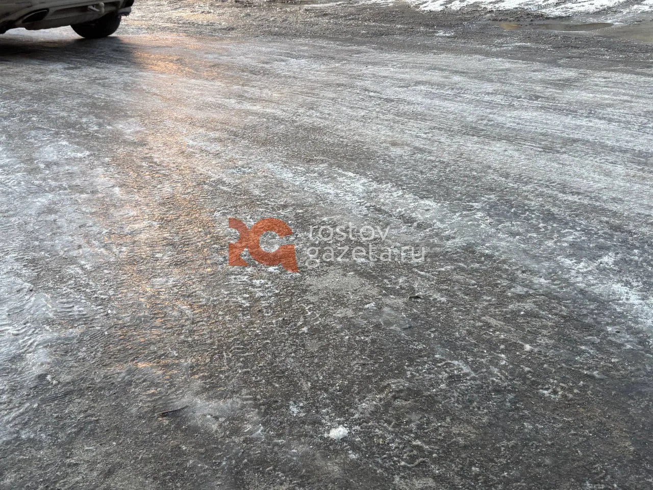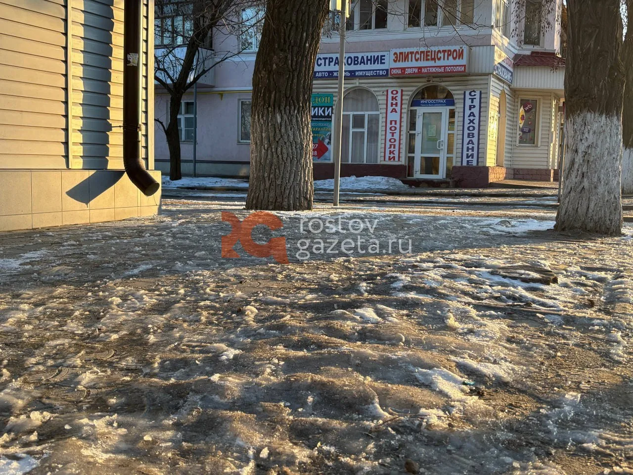 В то время как в Ростове всё ещё слякоть (хотя уже начинает подмораживать), в северных районах сегодня улицы сковало льдом.