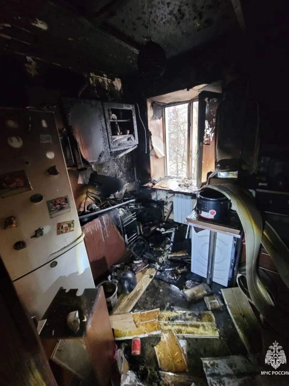 Пожар, по предварительной версии, возник из-за короткого замыкания электропроводки на кухне.