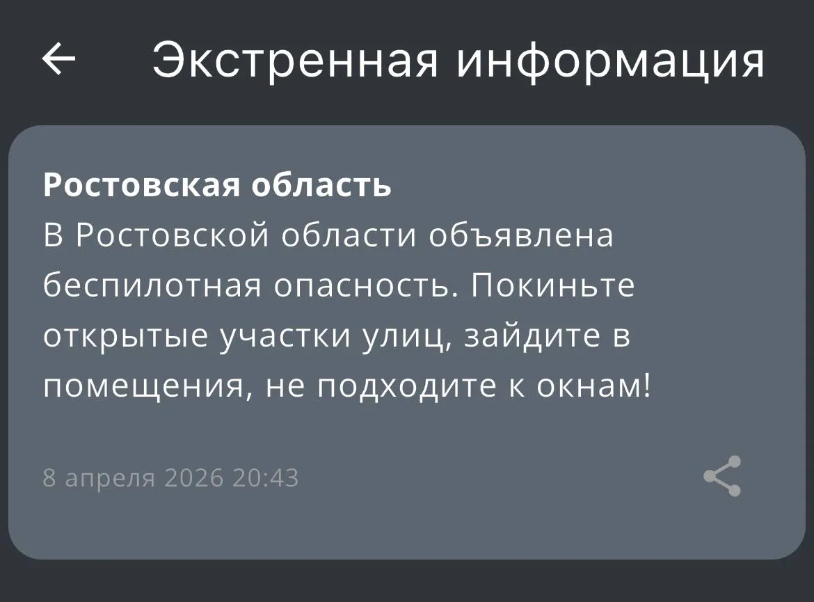 ⚡️ Беспилотная опасность объявлена в Ростовской области.
