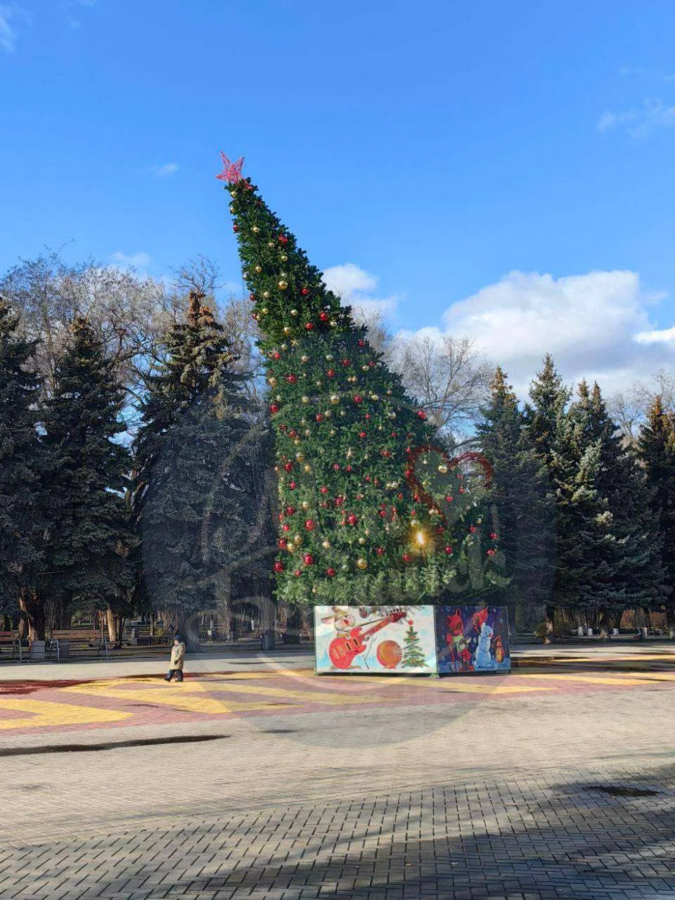 Он уже наклонил главную ёлку в Батайске, а в поселку ГРЭС в Красном Сулине — и вовсе опрокинул.