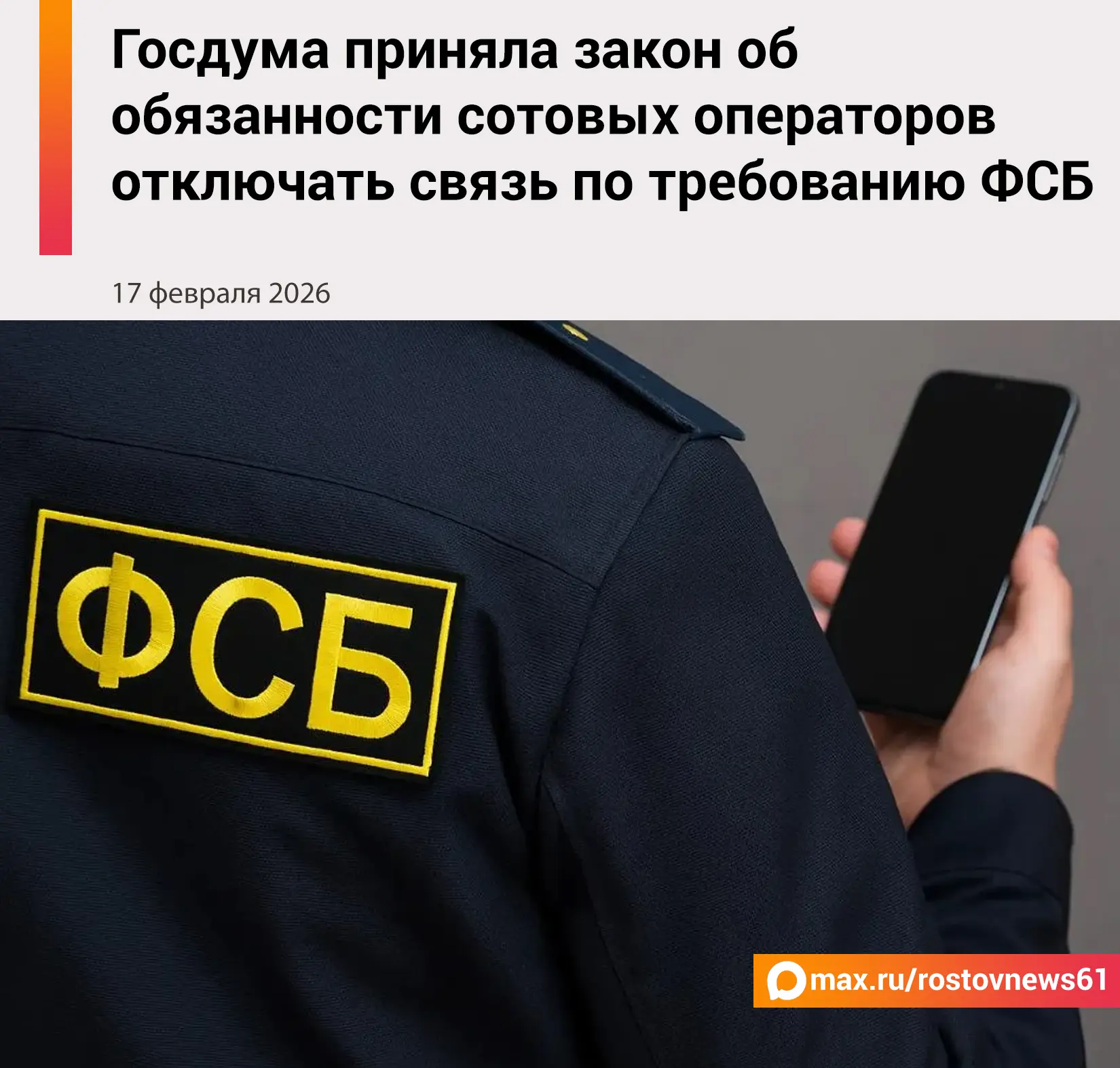 ⚡️⚡️⚡️ Путин подписал закон о приостановке услуг связи по требованию ФСБ