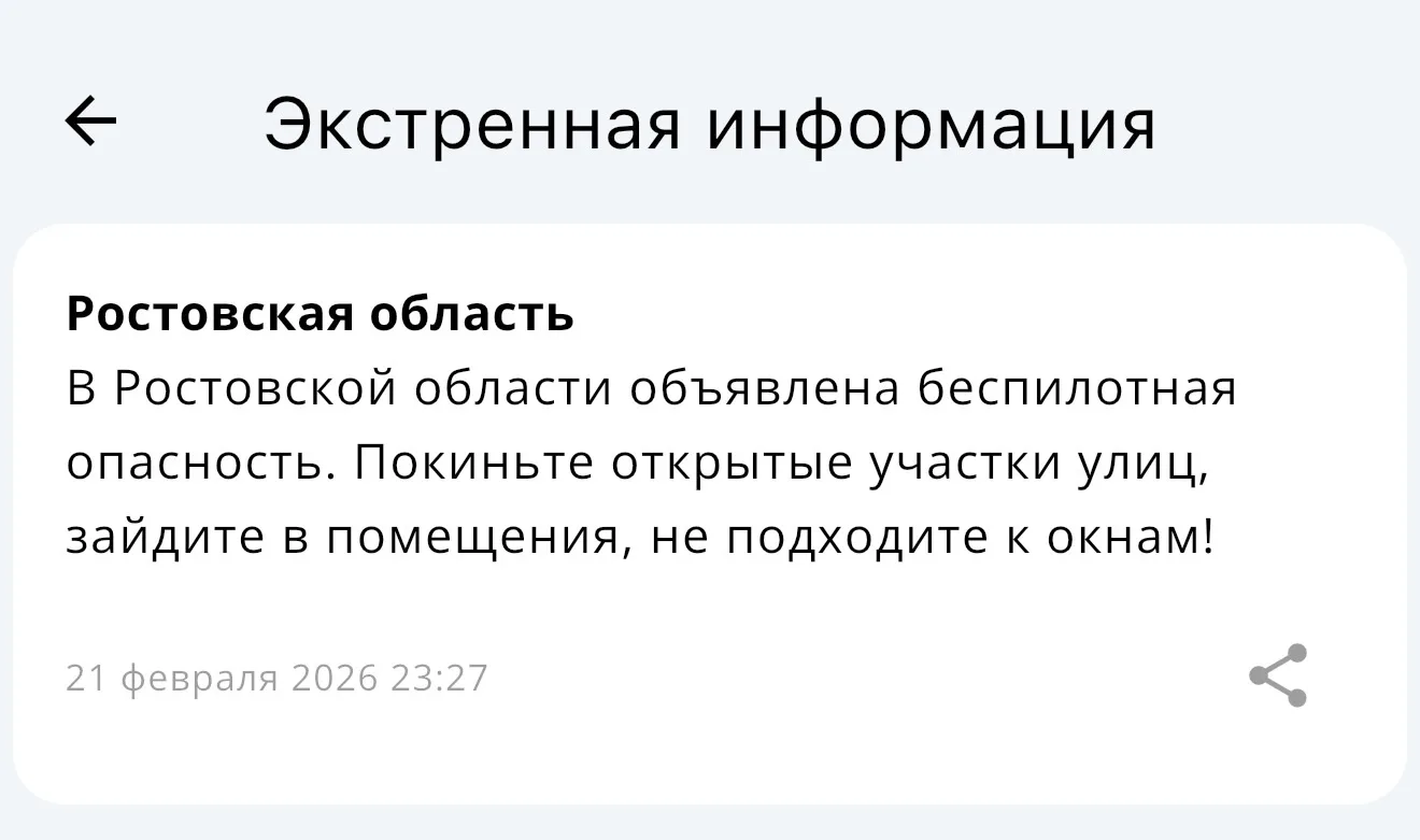 ‼️ Беспилотная опасность объявлена по всей Ростовской области.