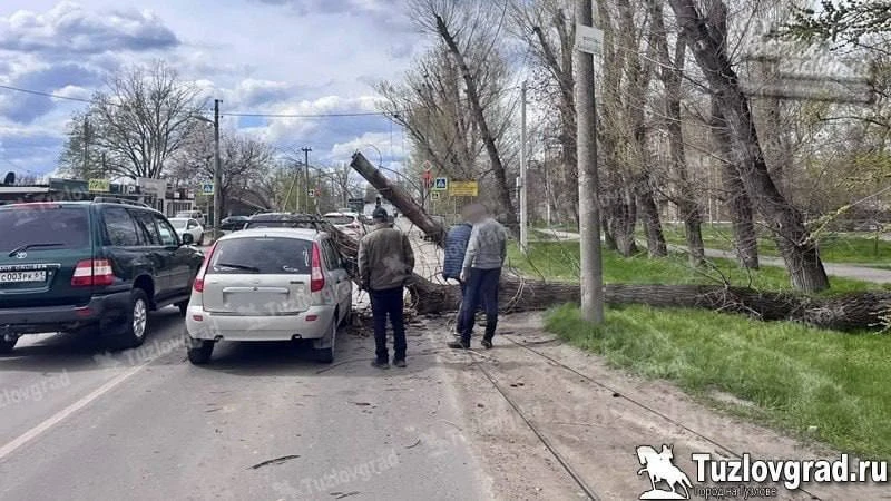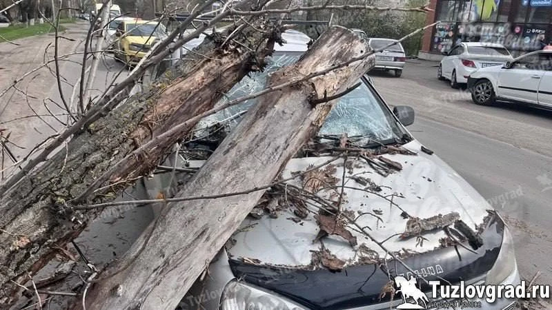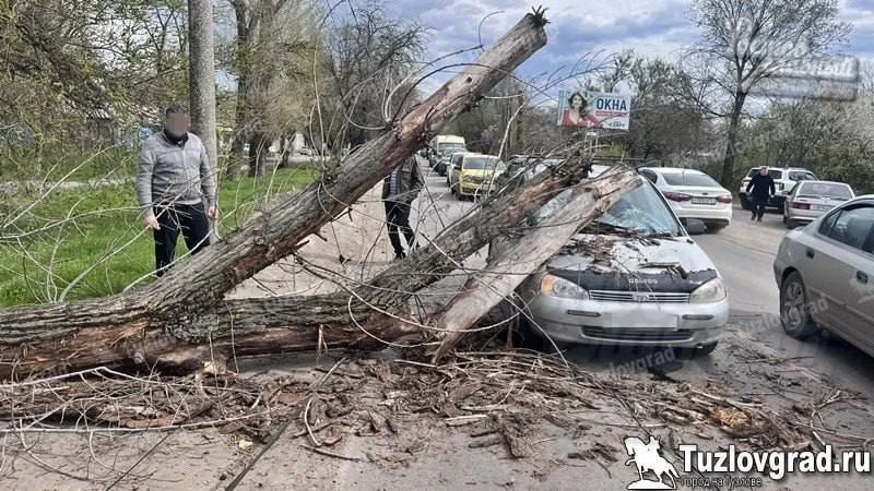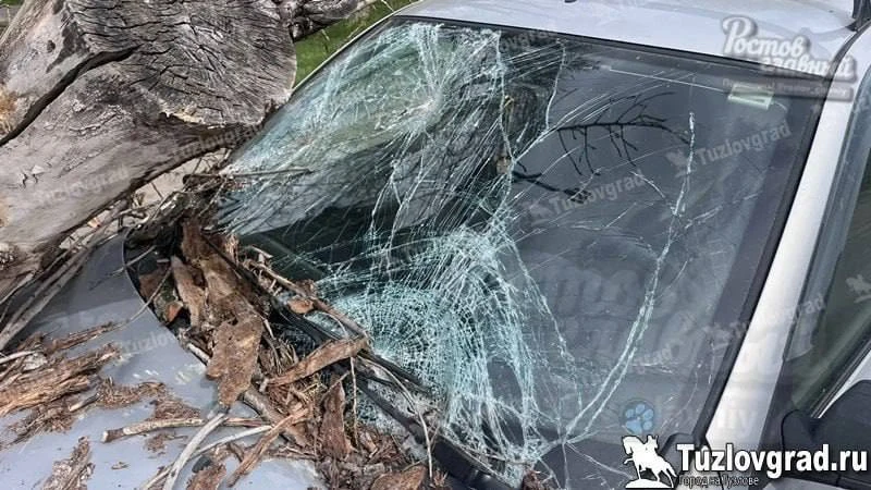 В Новочеркасске на машину упало дерево из-за сильного ветра
