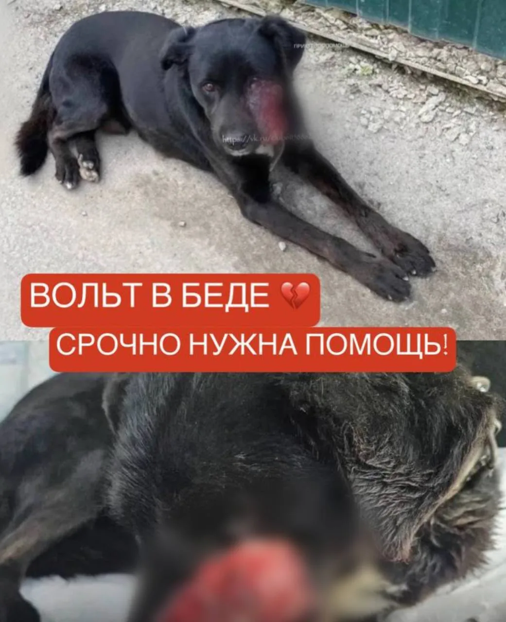 Пса по кличке Вольт нашли на улице с крупным новообразованием на морде и передали в приют.