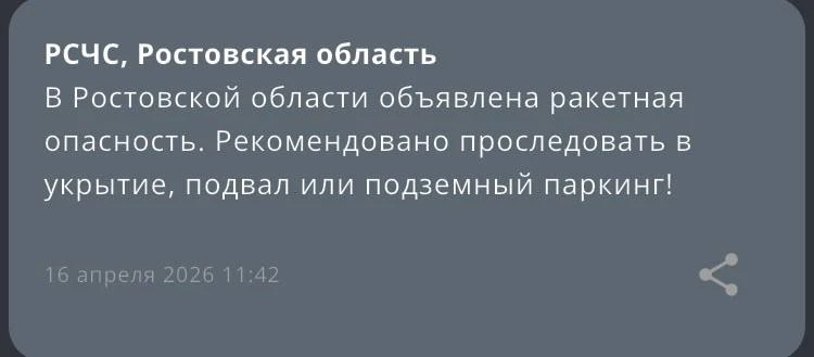 В Ростовской области объявили ракетную опасность.