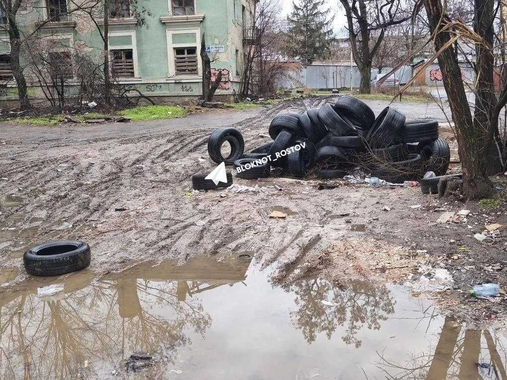 В Ростове мусорную площадку завалили старыми покрышками