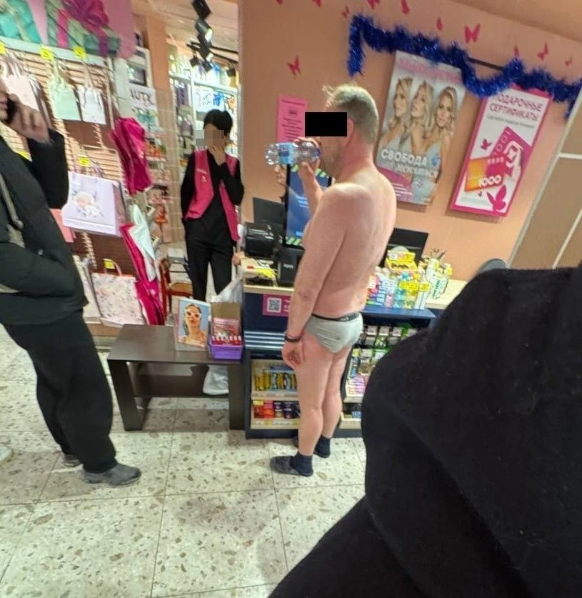 Голый мужик пришел в магазин покупать жене тушь