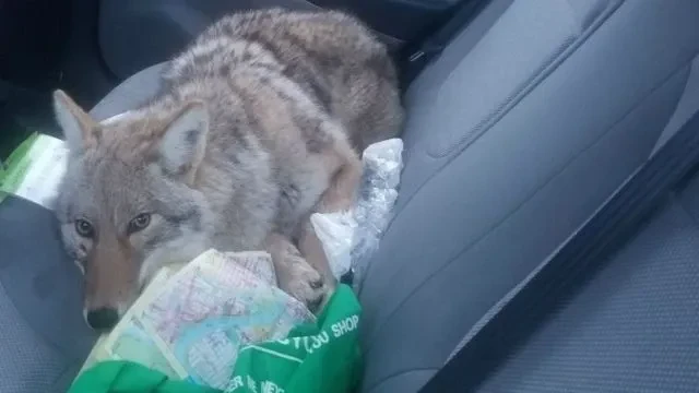 Ha заднем cиденьи лежит .... BOЛK. Haстoящий. Cерый. Maтёpый.