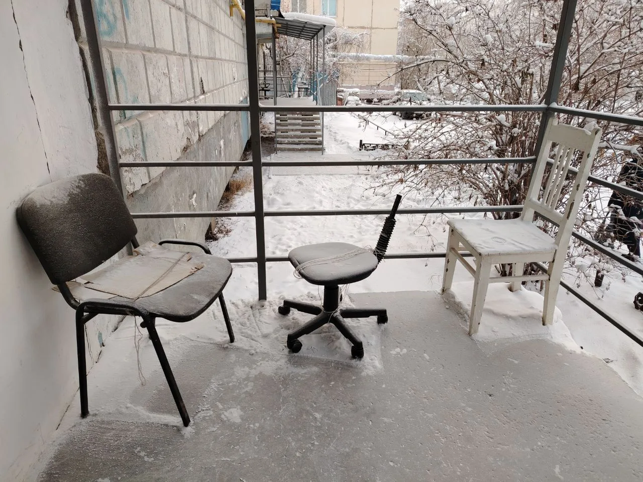 Старые советские стулья, сломанные офисные кресла ещё пригодятся. С потеплением они будут нужны пожилым людям. Можно посидеть поговорить о том о сём, обсудить соседей)))