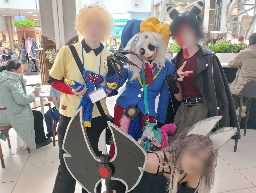 Дожили, по улицам ходят люди в костюмах персонажей Адского босса*, это официально запрещенное произведение в РФ из-за ЛГБТ* повестки в нем.