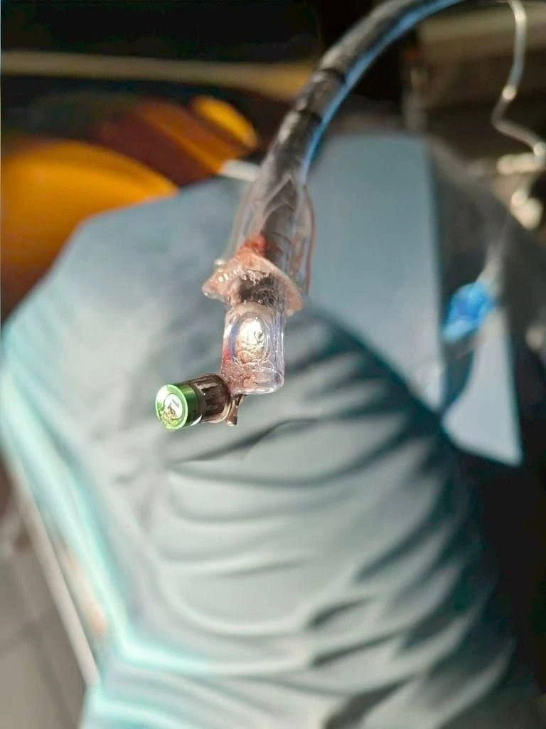 Он сразу почувствовал резкую боль и обратился в больницу. Рентген показал, что инструмент застрял в левом бронхе. Врачи провели операцию и аккуратно извлекли бур эндоскопом.