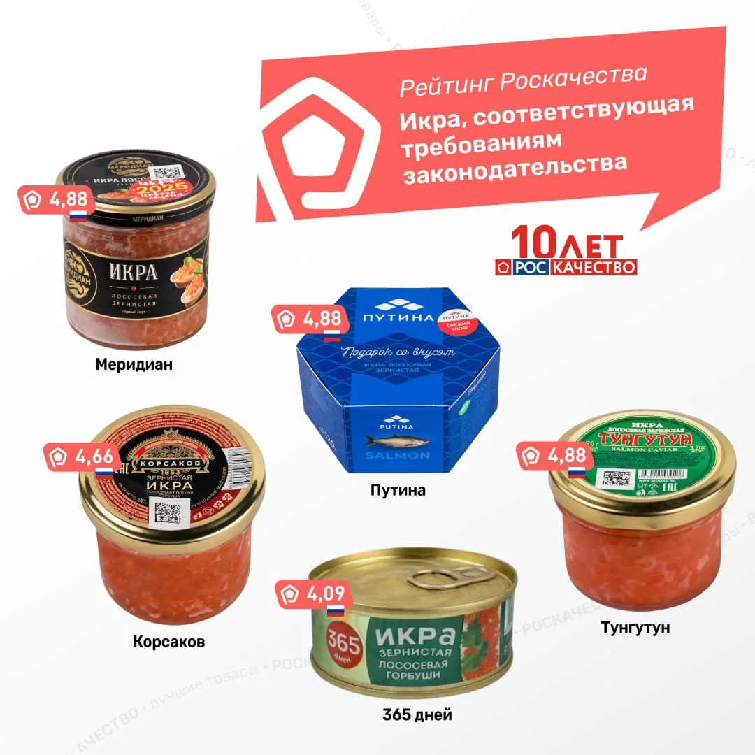 🔝 Обязательным требованиям соответствует икра «Тунгутун», «Корсаков», «Путина», «Меридиан», «365 дней».