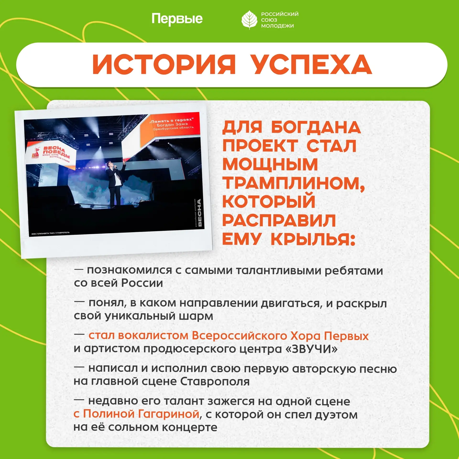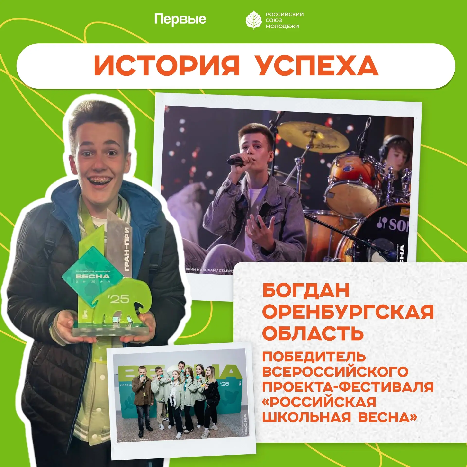 ⚡ 5 лет назад Богдан услышал от ребят постарше о Студвесне, и тогда родилась мечта — выступить на «Российской школьной весне», чтобы заявить о своём творчестве на всю страну.