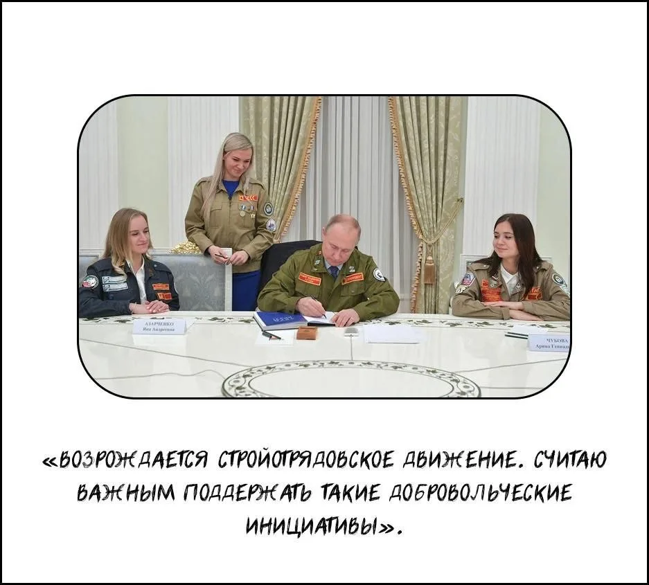 Сегодня вся страна поздравляет главного бойца. А вот Алексей Нагин, руководитель студотрядов ПФО, поделился карточками с лучшими цитатами про студенческие отряды от лидера страны 📌