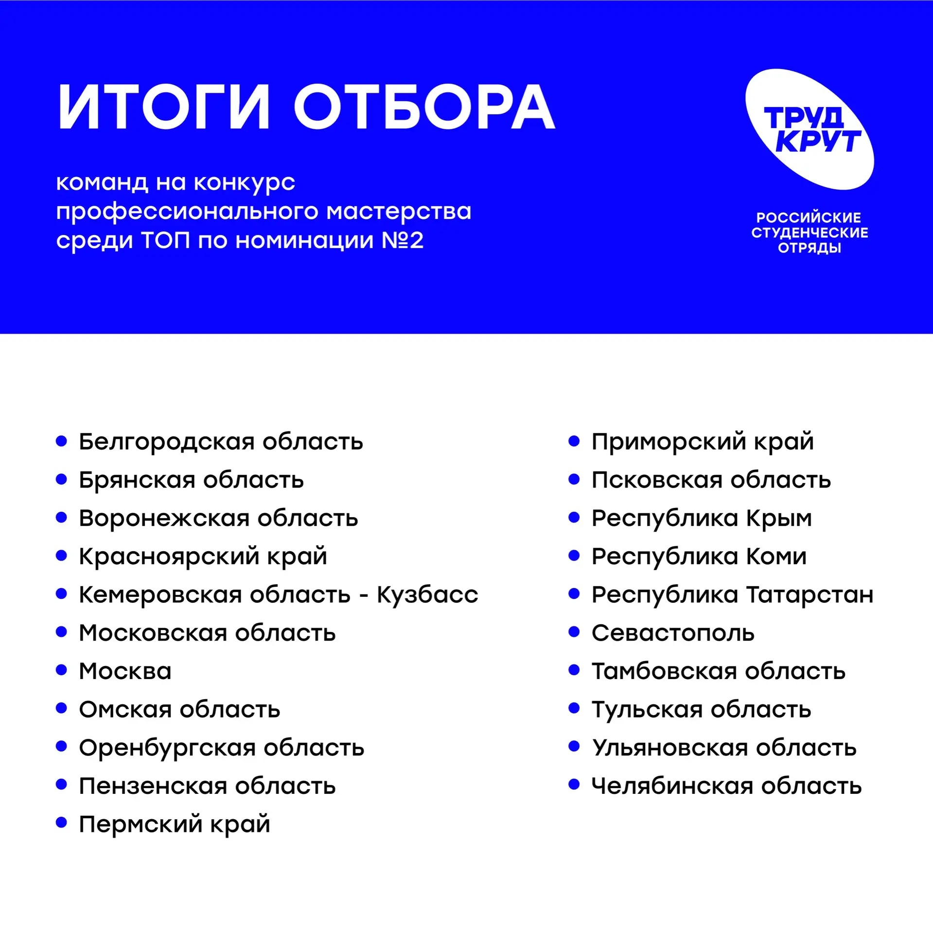 Совсем скоро пары из 25 регионов страны вновь встретятся с вагоном лицом к лицу, но уже в рамках Всероссийского конкурса профессионального мастерства. А вот и регионы-участники 😉