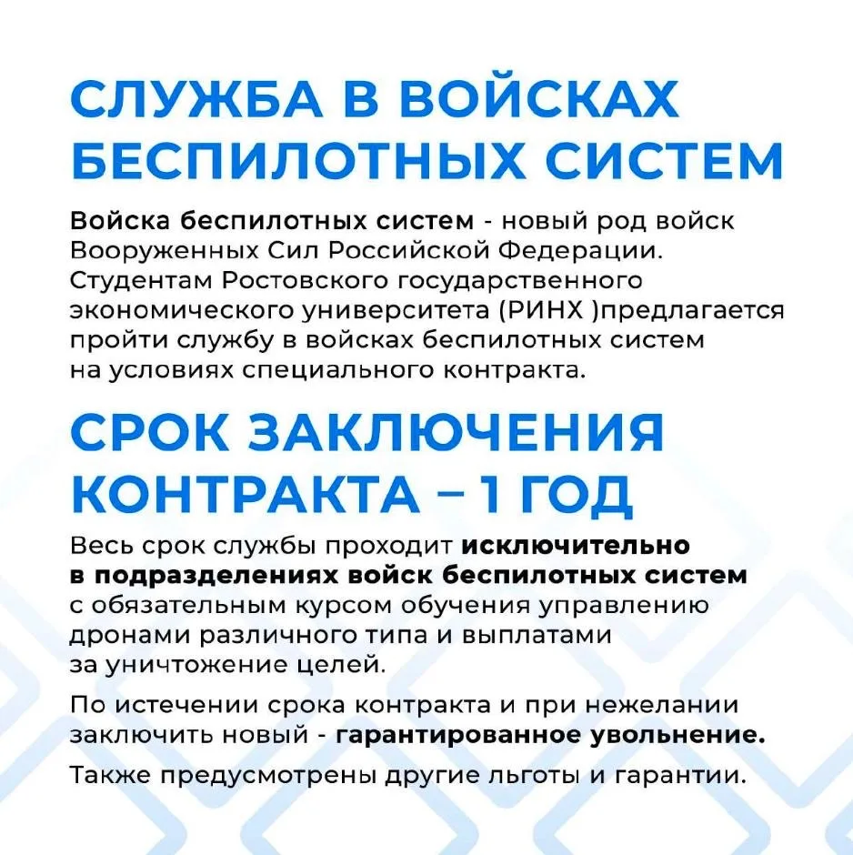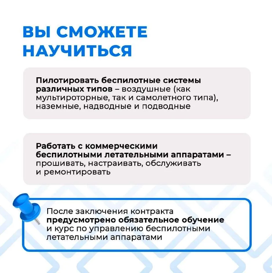 Вы можете пройти службу в войсках беспилотных систем по специальному контракту.