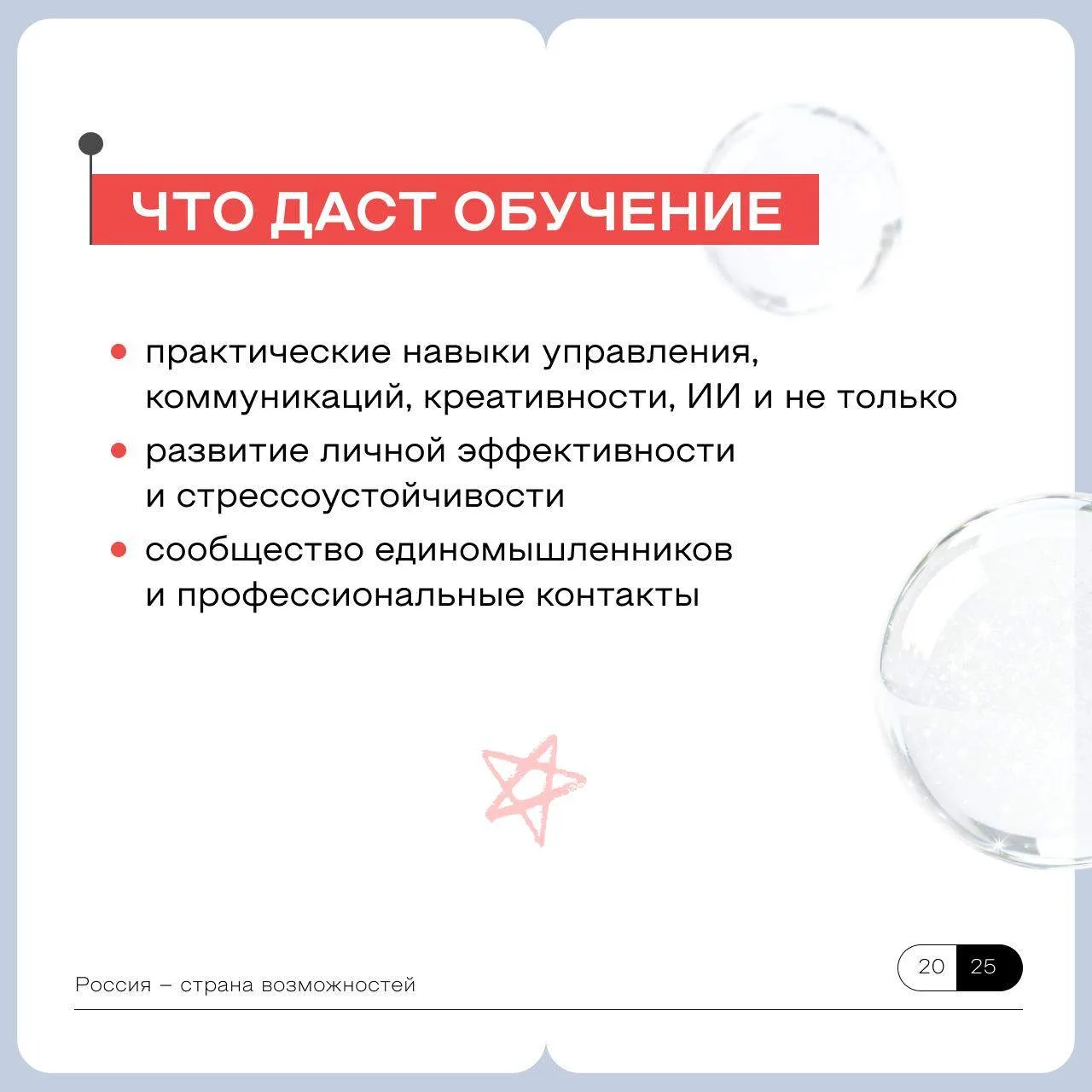 Всего за две недели вы узнаете много нового и разработаете кейсы, которые попадут в сборник для руководителей по всей стране.