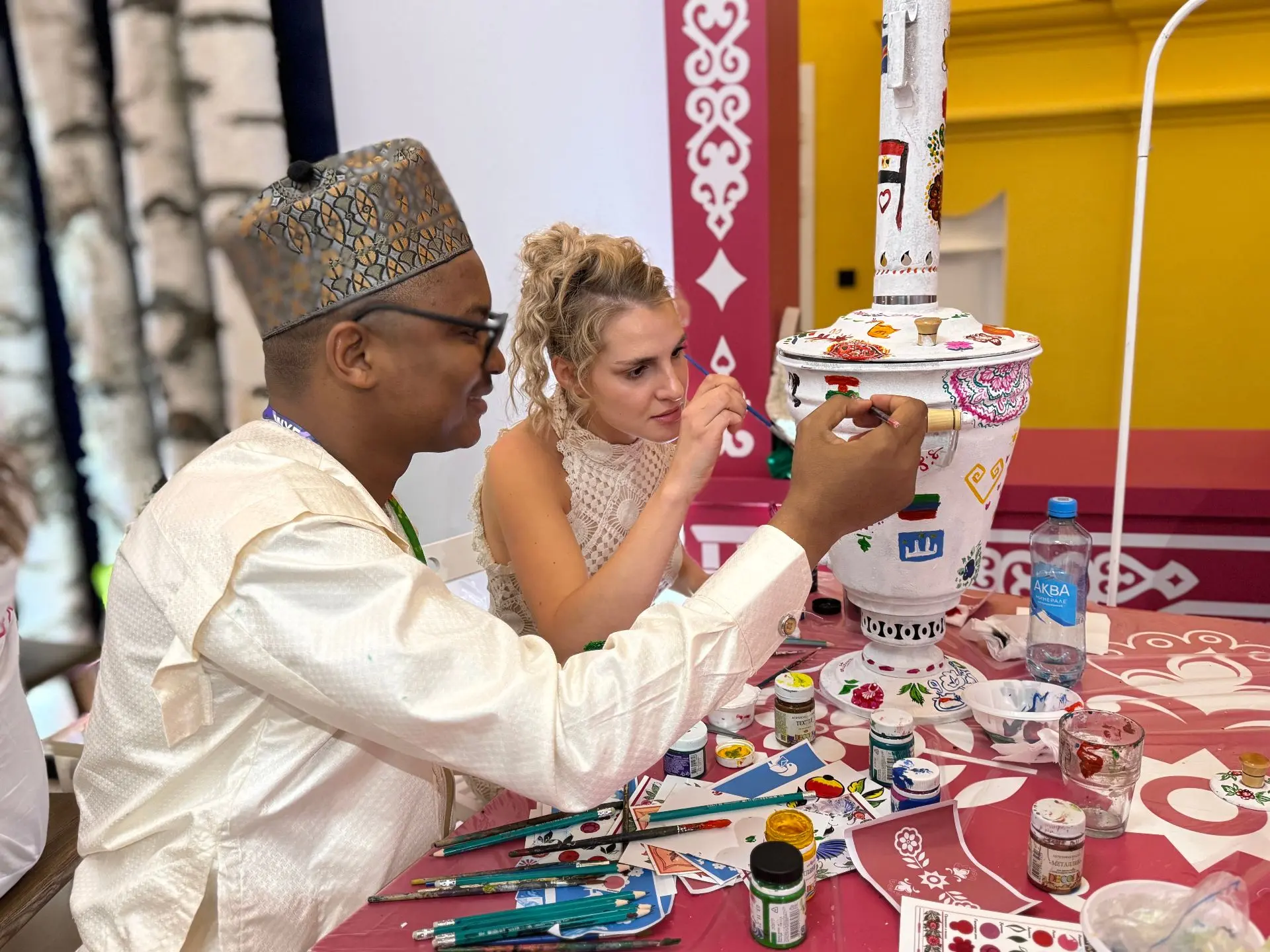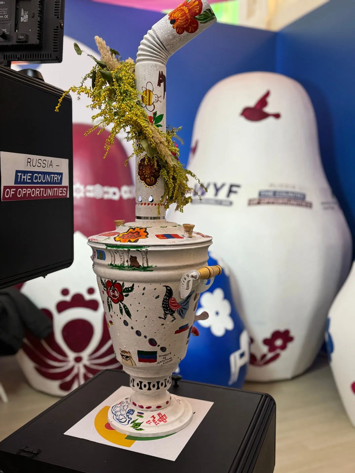 Сегодня на Слете ВФМ команда нашей платформы передала делегации Абхазии уникальный самовар. Участники фестиваля из разных стран оставили на нем свои пожелания и рисунки.