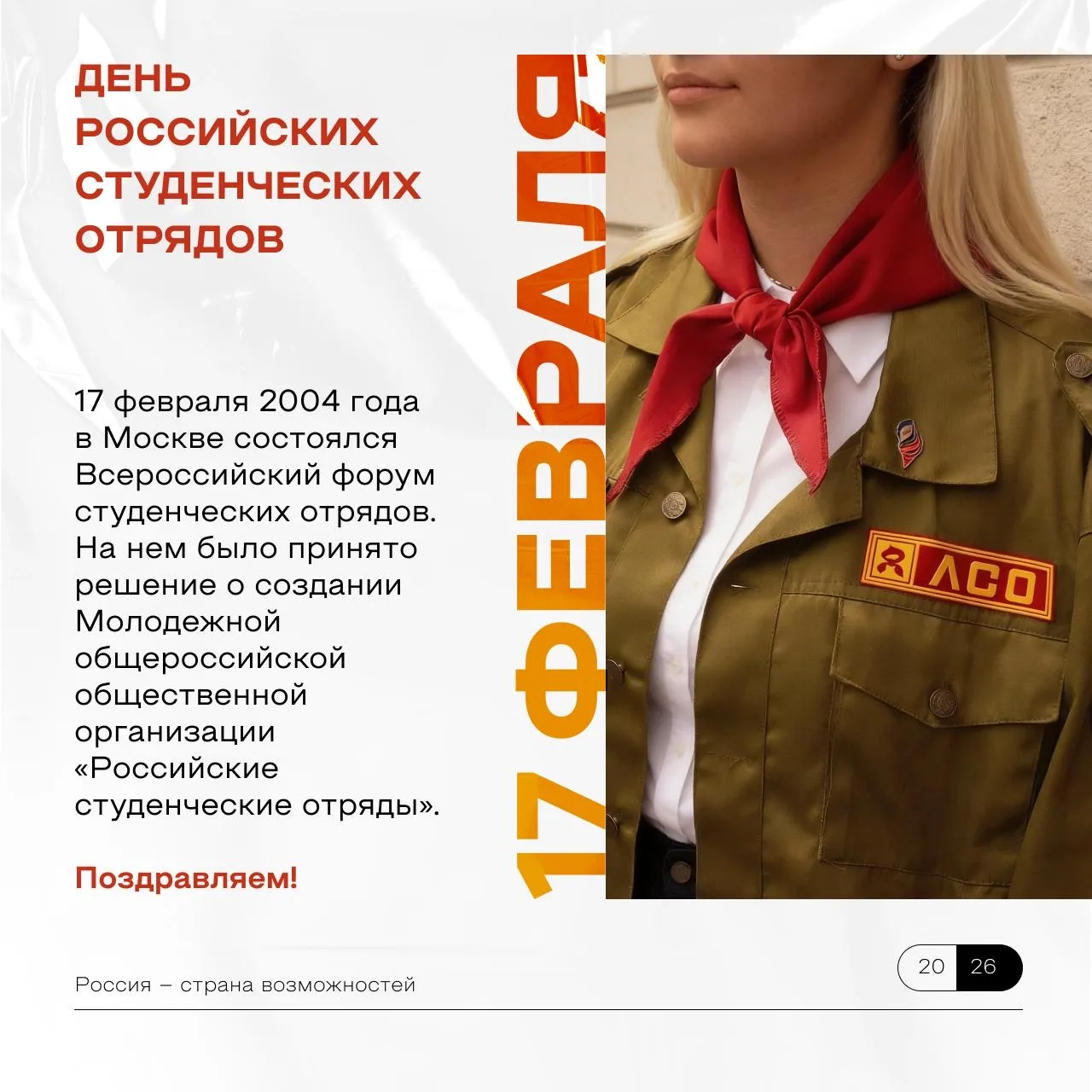 Сегодня День российских студенческих отрядов! Движения, которое объединяет сотни тысяч молодых людей по всей стране. Строительные, медицинские, педагогические, сервисные, отряды проводников — это реальная работа, профессиональный рост и первый серьезный опыт.