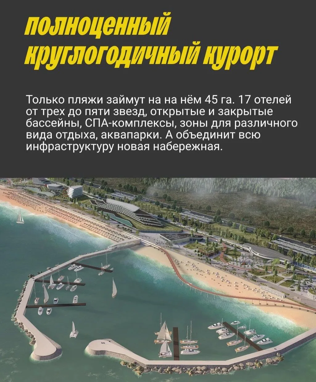 По плану она реализуется на западном побережье Крыма и станет частью масштабного круглогодичного курорта «Золотые пески России».