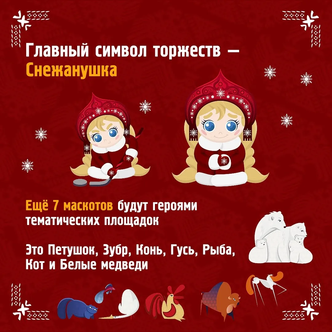 🔸Символ праздника: Снежанушка, персонаж, созданный в рамках Всероссийского фестиваля школ креативных индустрий.
