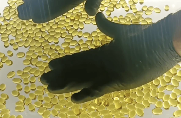 Чтобы получить капсулы с жидкостью вместо смешивания, таблетирования и капсулирования сначала идет варка желатина.