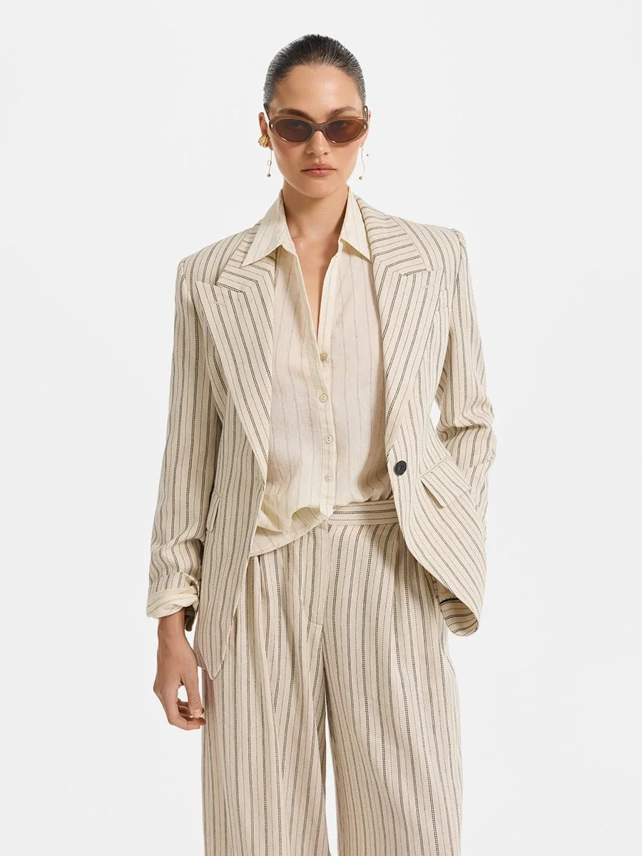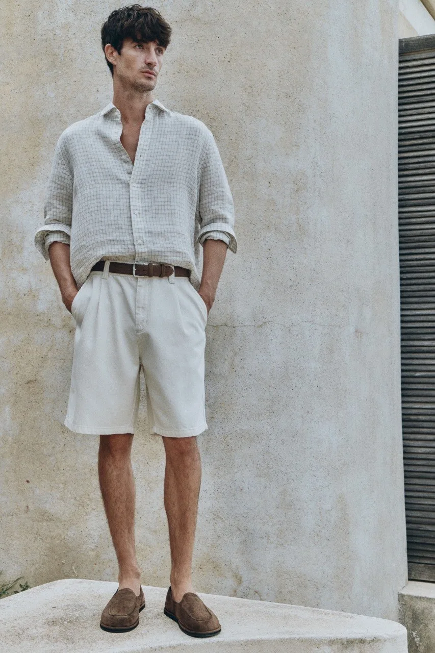 В центре внимания: сет - рубашка и шорты с защипами, однобортный блейзер с брюками прямого кроя.