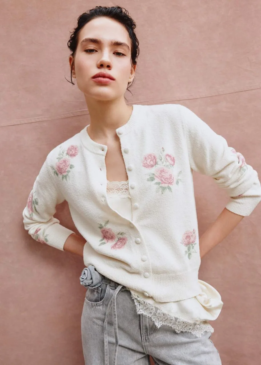 Из интересного: Блуза с воланами, Куртка-бомбер, Ажурный кардиган из хлопка, Джинсы с цветочной вышивкой