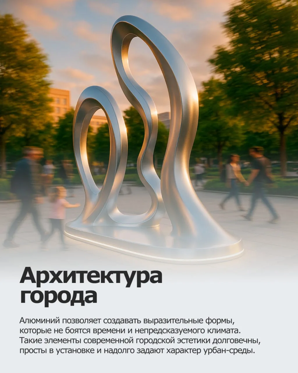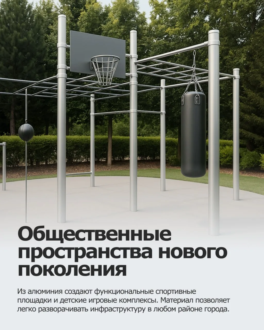 🍰 Ну и вишенка на торте: алюминий дал толчок развитию спорта, искусства, музыки, культуры и человечества в целом. И мы верим, что в будущем он станет главным элементом инфраструктуры, в том числе городской, где будут жить наши дети и внуки.