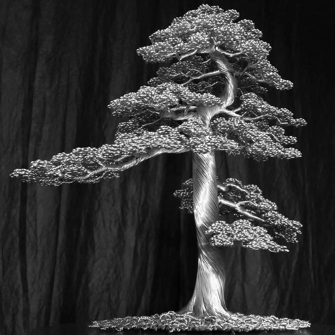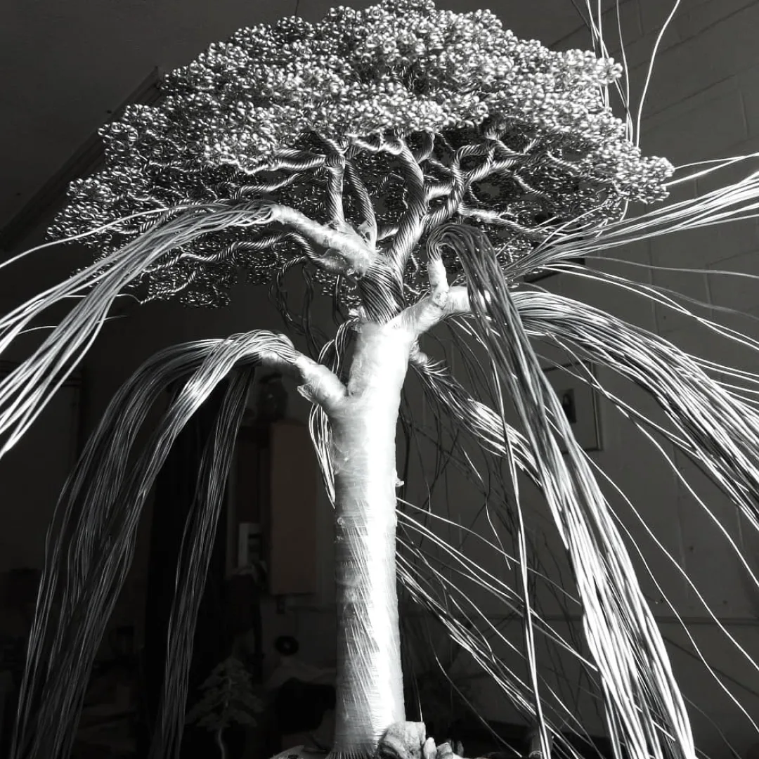 🌳 Кевин Айрис — скульптор, который посвятил жизнь искусству, природе и алюминиевой проволоке. Он создаёт алюминиевые скульптуры деревьев разных пород и размера: начиная от маленьких настольных бонсаев и сакур и заканчивая огромными пальмами высотой с человека среднего роста.