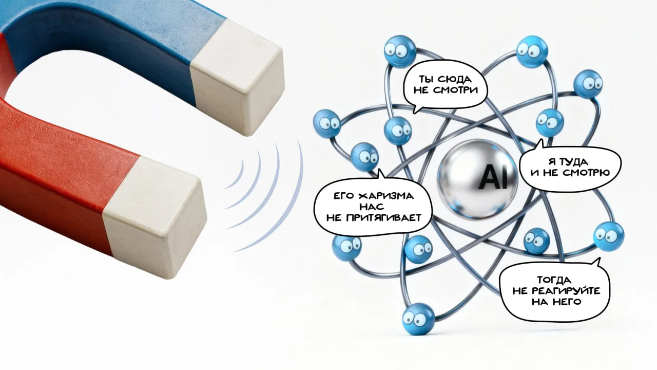 🪨 Алюминий устроен иначе. Его атомы не образуют постоянного магнитного порядка — их маленькие магнитики-электроны «смотрят» в разные стороны и взаимно гасят друг друга. В итоге металл остаётся нейтральным для магнита.