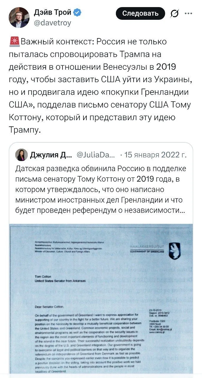 ❗️Американские СМИ назвали Россию виновником агрессии Трампа в отношении Венесуэлы и Гренландии.