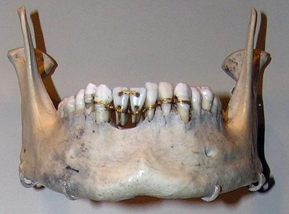 2. Зубные Протезы: Для замены потерянных зубов использовались протезы, сделанные из кости, слоновой кости или дерева. Эти протезы прикреплялись к соседним зубам с помощью золотых или серебряных проволок.