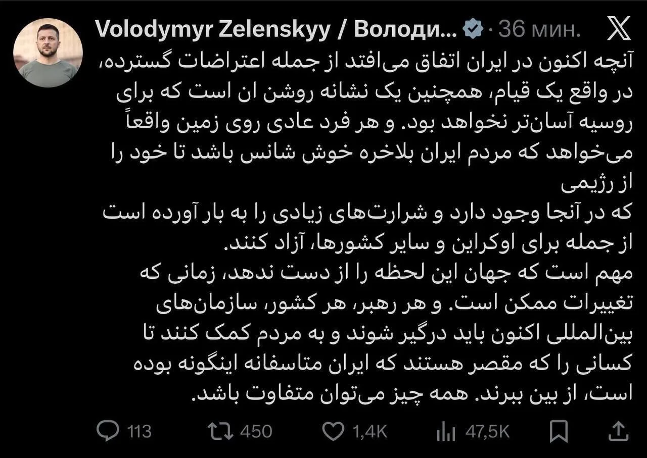 Зеленский неожиданно заговорил на персидском языке на фоне протестов в Иране.
