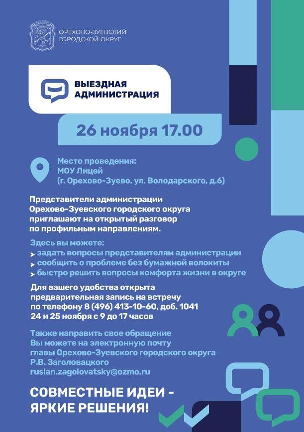 📍 26 ноября приглашаю жителей на выездной прием команды администрации в городе Орехово-Зуево.