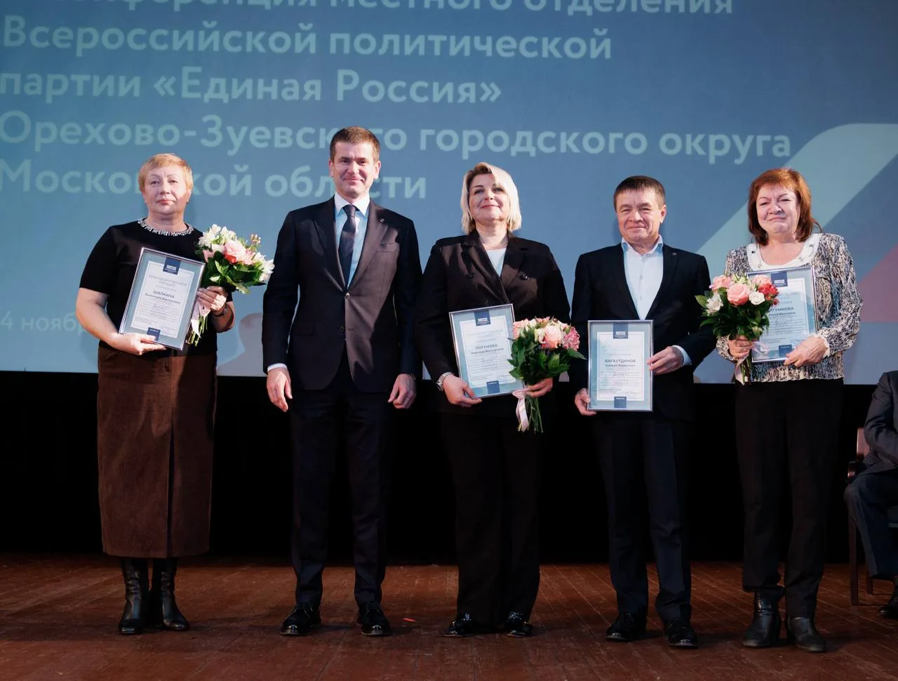 Секретарь местного отделения Партии «Единая Россия» Орехово-Зуевского городского округа, депутат Госдумы Геннадий Панин наградил тех, кто вносит существенный вклад в работу местного отделения, благодарственными письмами Секретаря Московского областного регионального отделения Партии «Единая Россия» Игоря Брынцалова. Депутаты Мособлдумы Максим Коркин и Эдуард Живцов вручили партийные билеты новым членам партии.