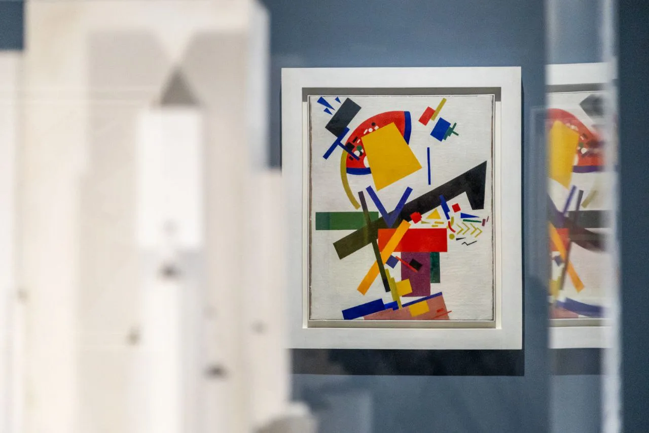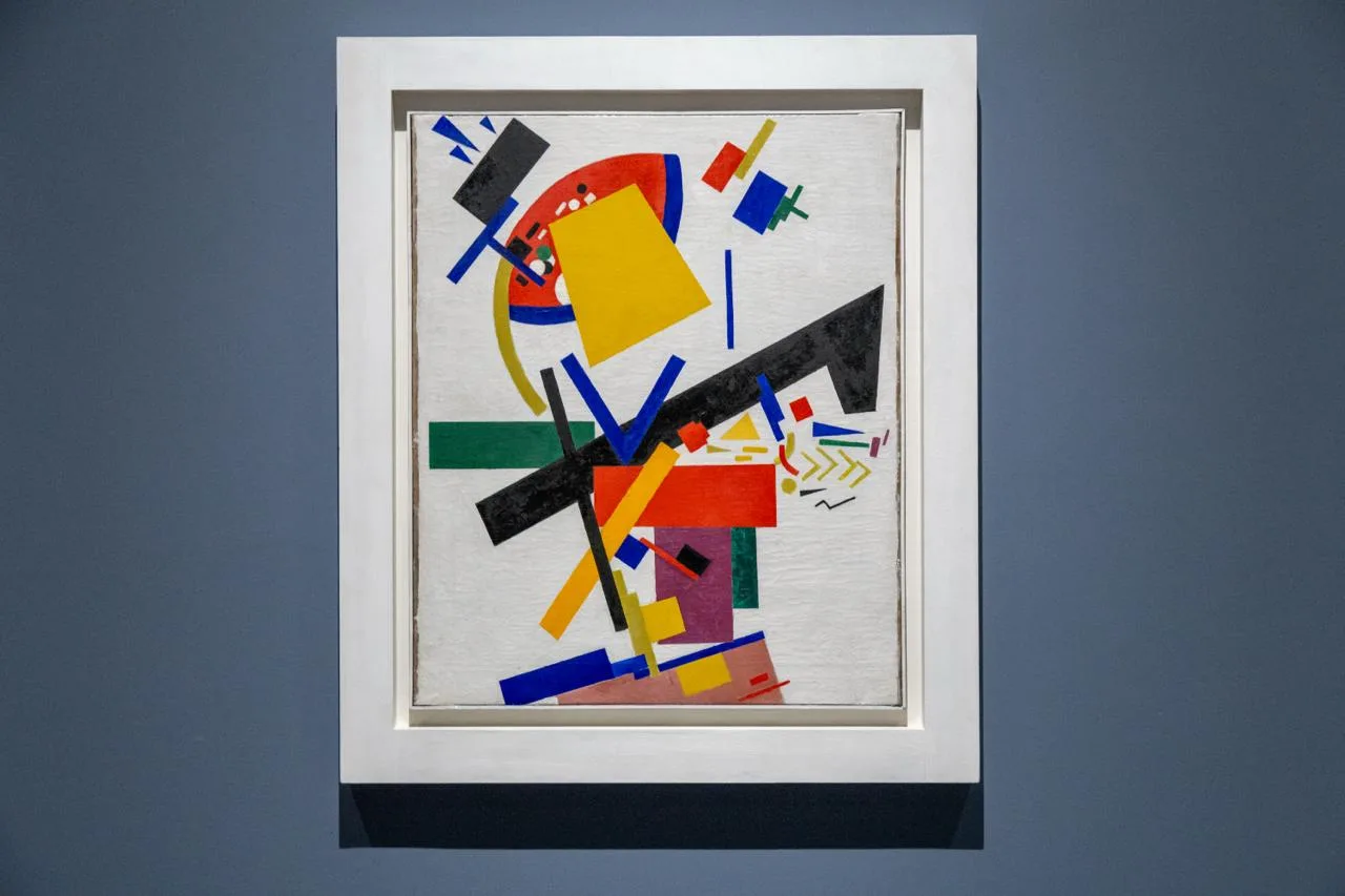 В экспозиции представлено более 400 главных шедевров Казимира Малевича, Василия Кандинского, Марка Шагала и других новаторов искусства. Среди ключевых экспонатов демонстрируются супрематические композиции и знаменитый триптих – «Черный квадрат», «Черный крест» и «Черный круг» – Казимира Малевича, абстракции Василия Кандинского, аналитическое искусство Павла Филонова, «Угловые контррельефы» Владимира Татлина.