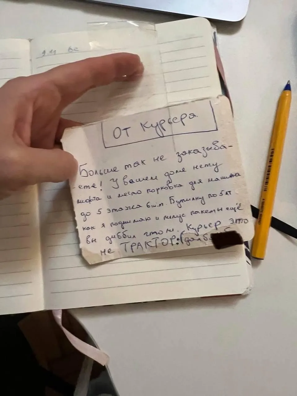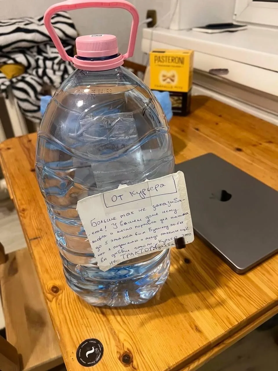 🫣 «Курьер это не трактор». Курьер-бедолага оставил записку девахе, которая заказала 6 пятилитровых баклашек воды на 5 этаж без лифта.