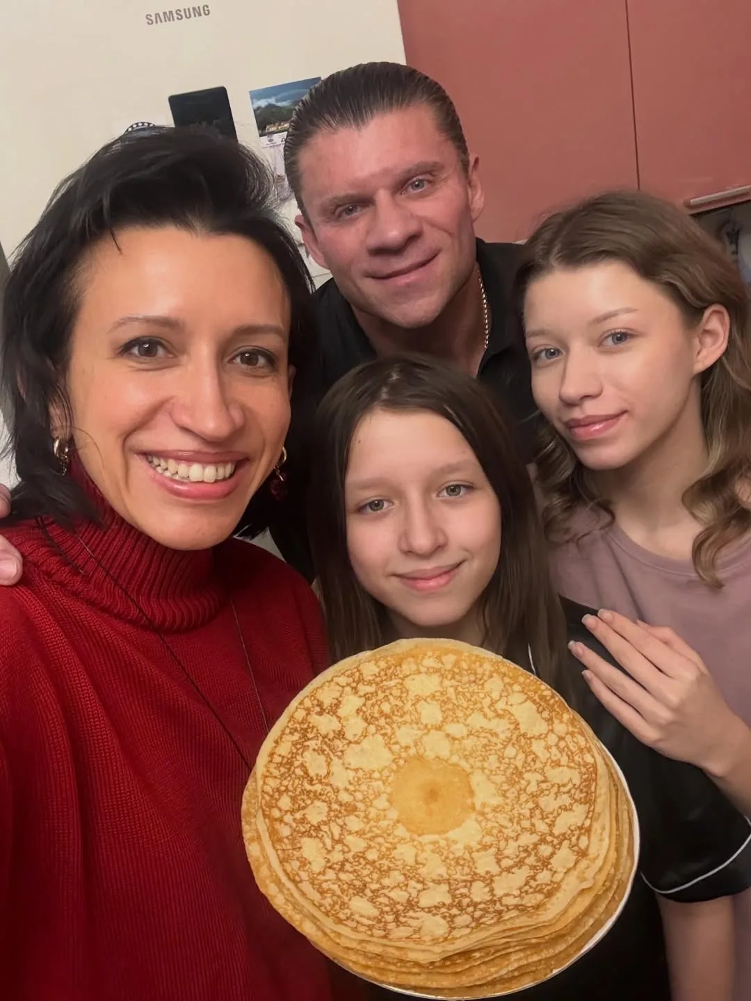 Елена Борщёва вместе с близкими отмечает праздник с горой аппетитных блинов и хорошим настроением.