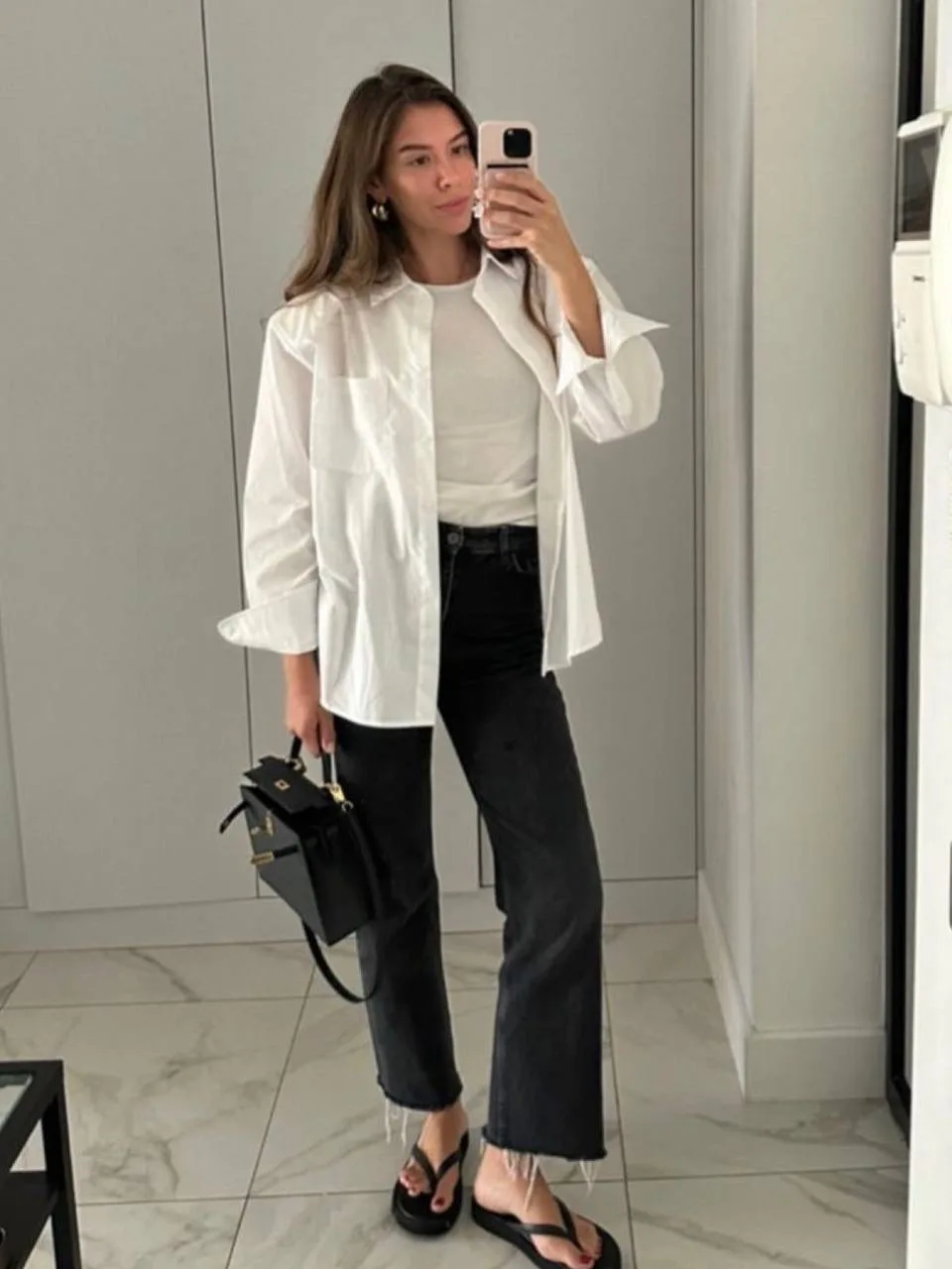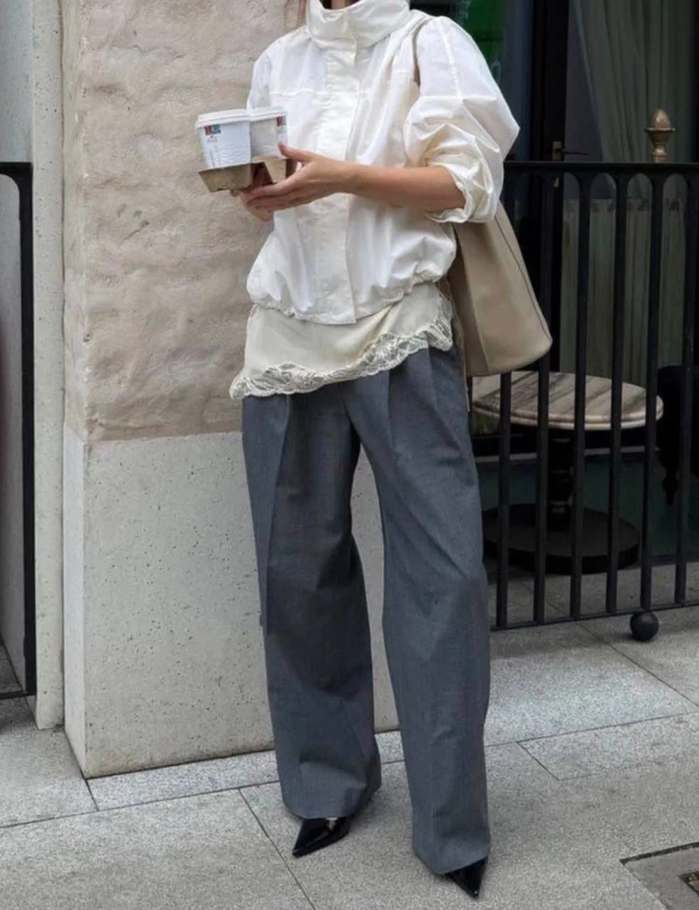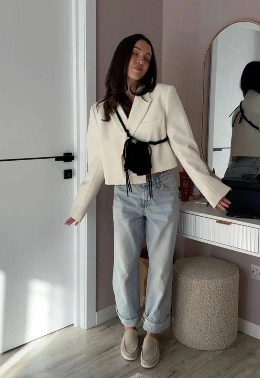 В основе такого образа — простота. Это широкие брюки из денима или плотного хлопка, в которых так легко шагается по просохшим тротуарам, объемные рубашки «с мужского плеча», наброшенные поверх базовых футболок, — они ловят весенний ветер и создают вокруг то самое ощущение воздуха, которого так не хватает в будничной суете.