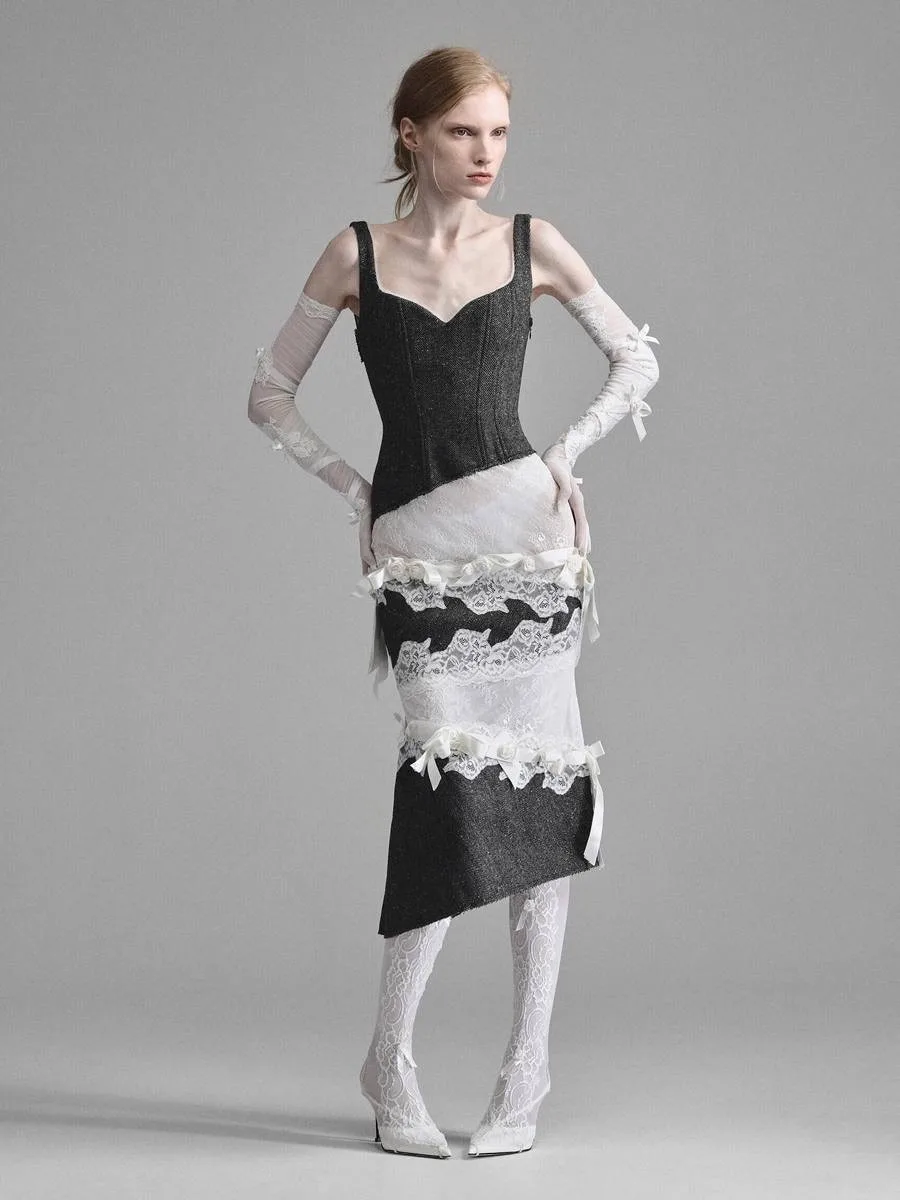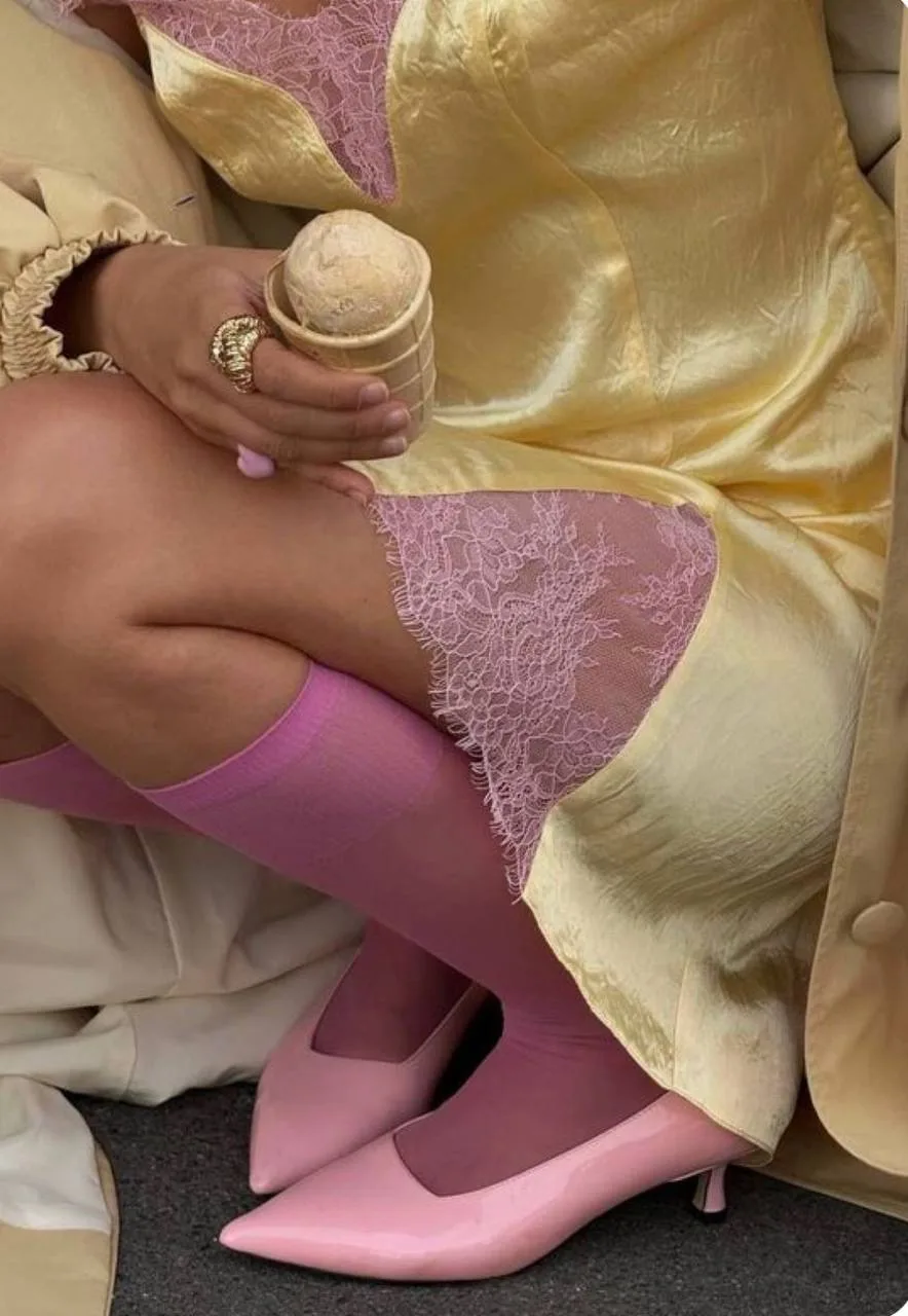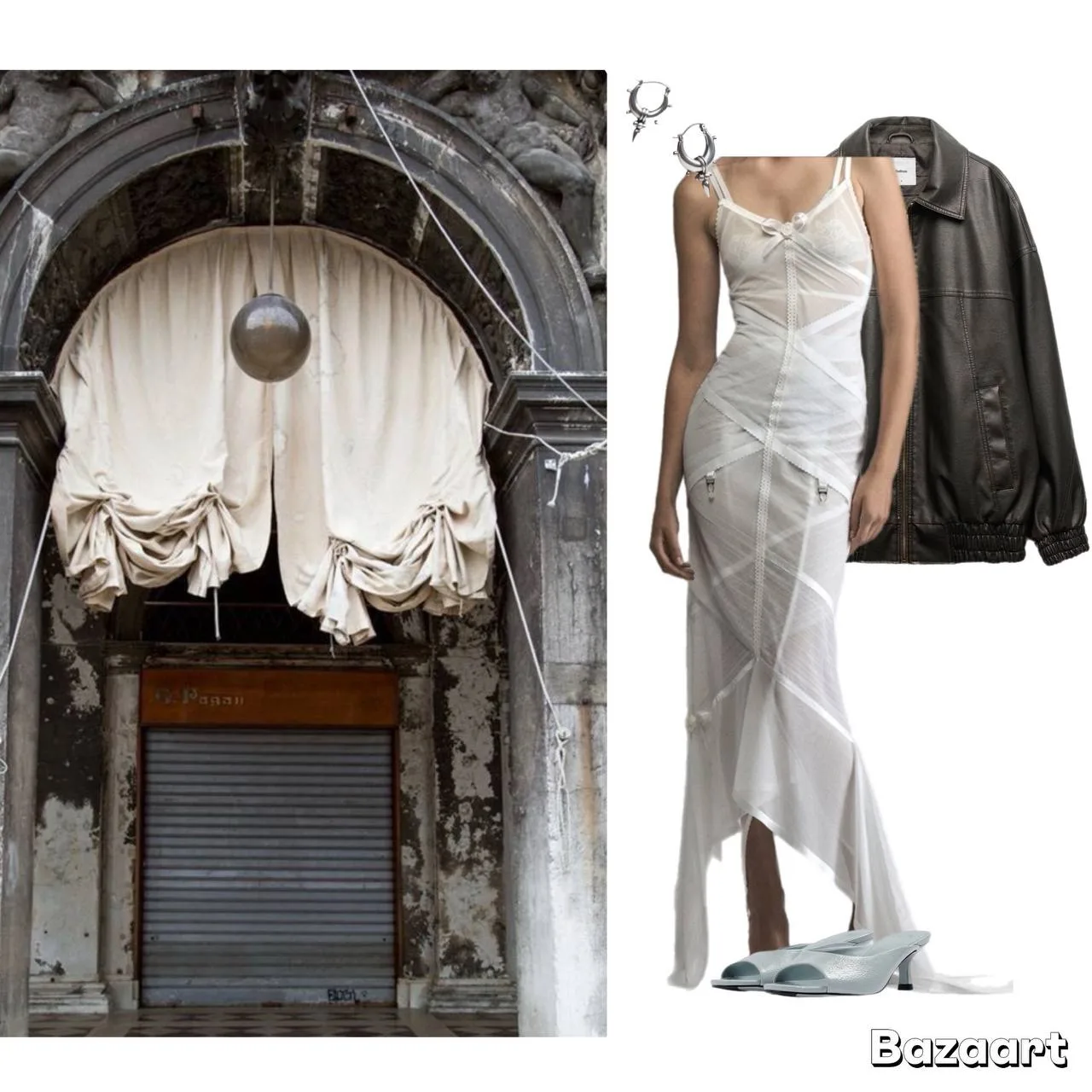В этом и есть весь кайф гранжа — смешать безупречную чистоту шелка или кружева с грубой текстурой кожи. Никаких лишних аксессуаров, тяжелого макияжа или сложных укладок. Только этот дуэт. Иногда хочется именно такого: выглядеть эффектно и дерзко, но при этом чувствовать легкость.