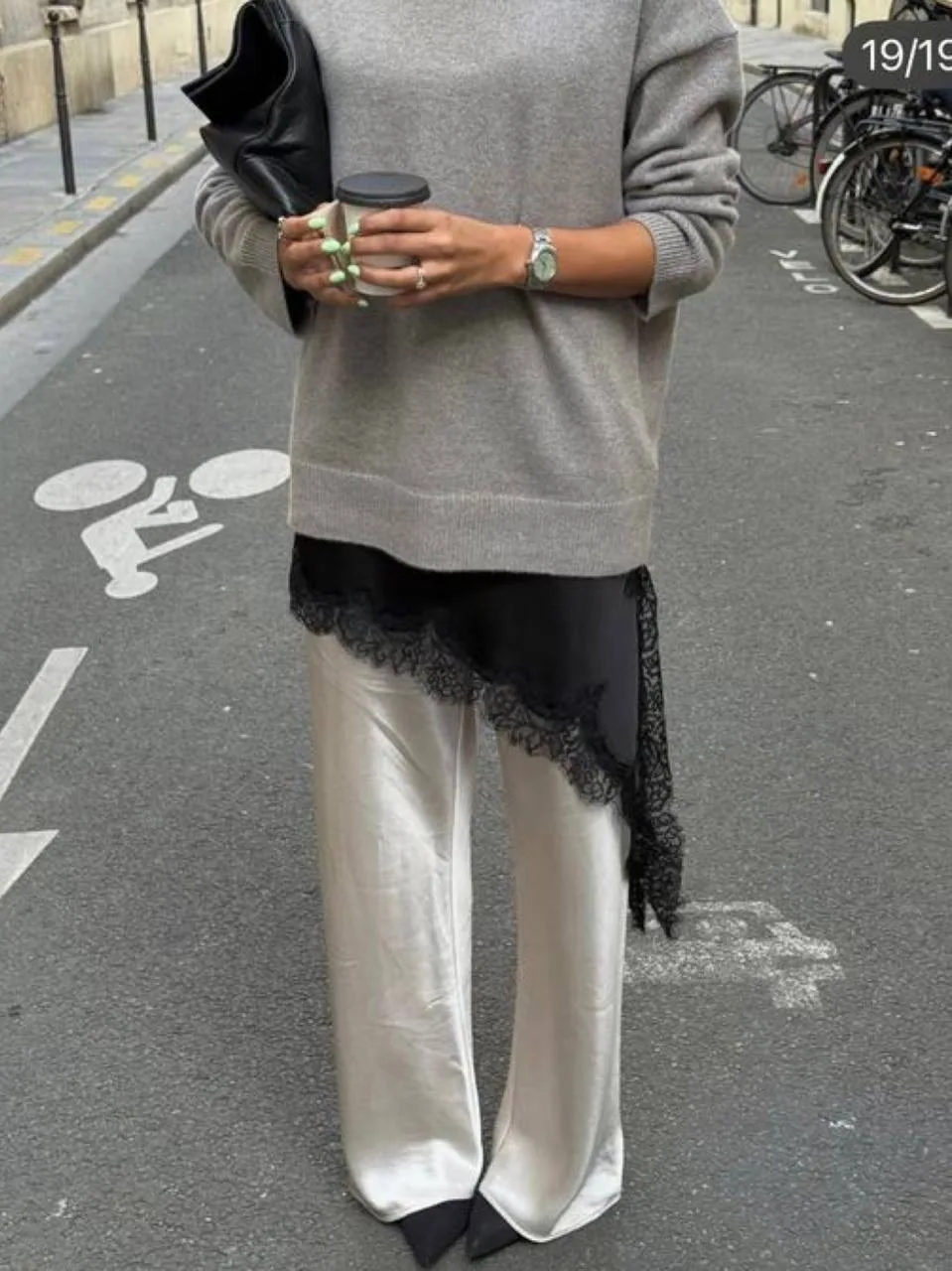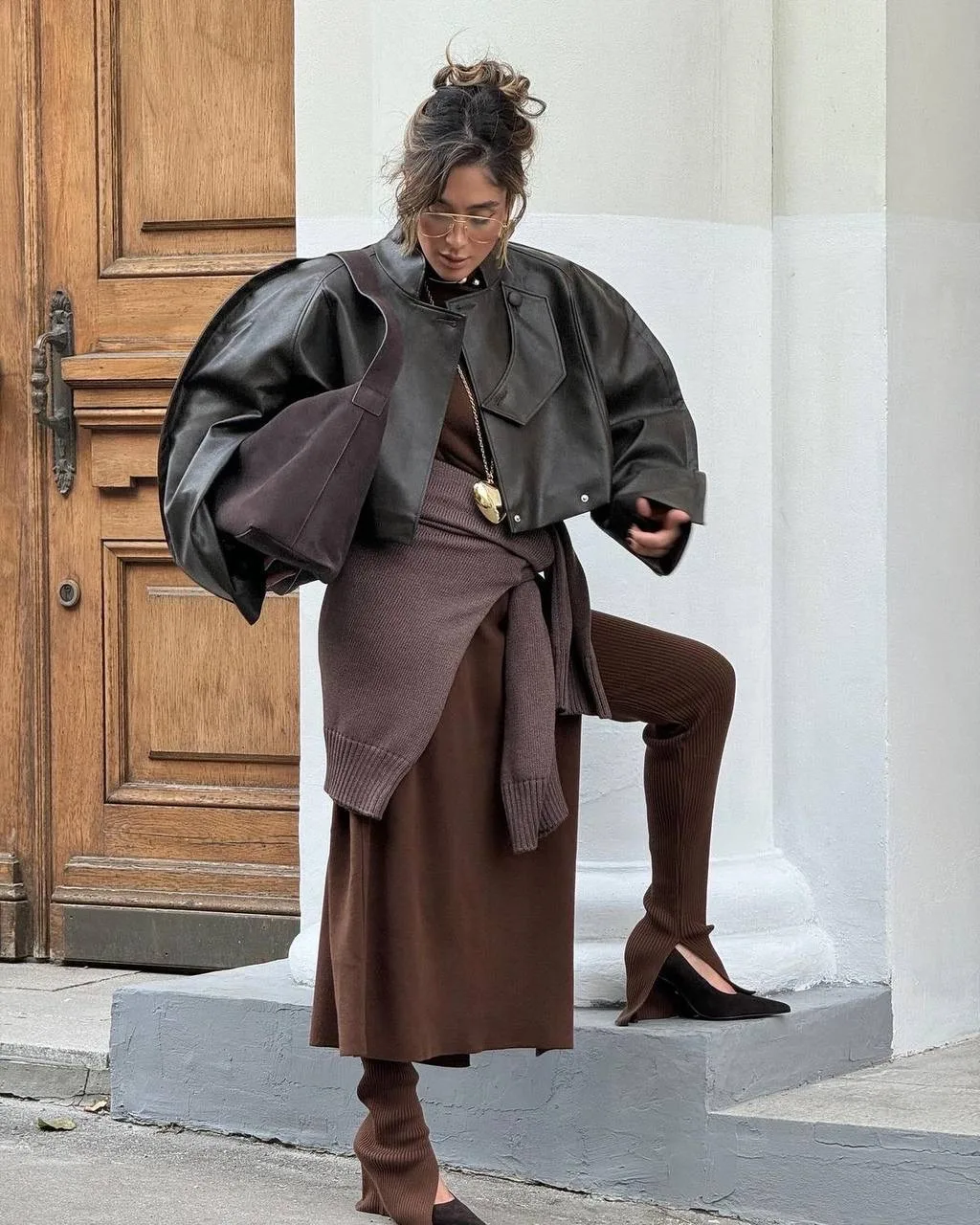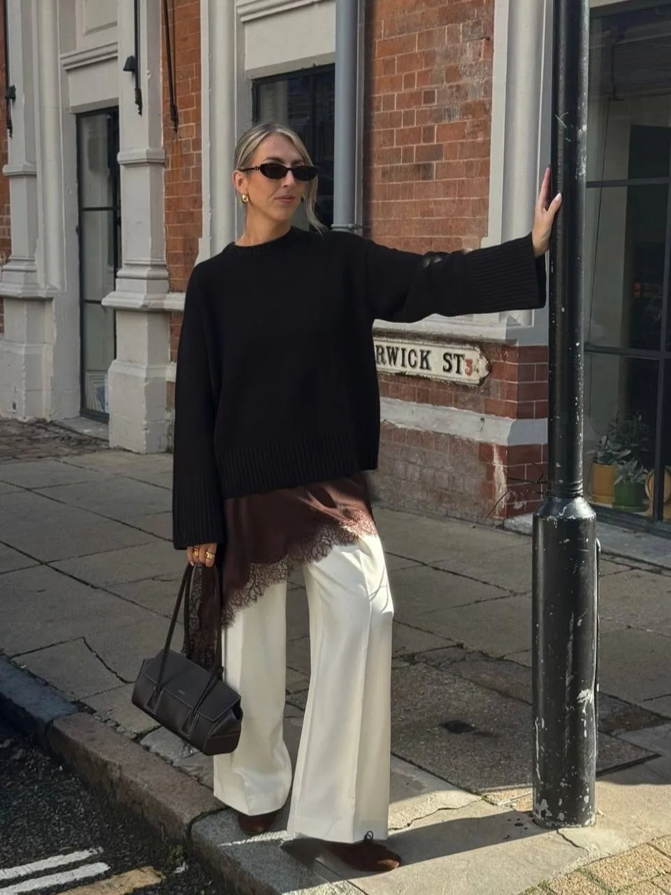 ▪️Комбинируйте объемные и облегающие элементы. Сочетайте широкие свитера и пиджаки с узкими джинсами или леггинсами. Это подчеркнет стройность вашей фигуры.